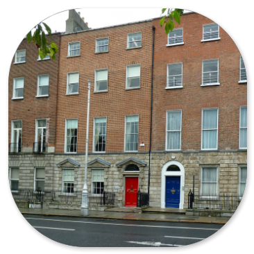 Die Geschichte des Schlosses geht bis in das Jahr 1172 zurück. Danach war es bis ins 20. Jhdt. Hauptwohnsitz der Familie Butler. In einem Selfguide - Besuch spazieren wir durch die Gänge und Säle des Schlosses und blicken durch die Fenster schadenfroh nach draußen, wo die Leute im Regen herumlaufen müssen. Der hält auch noch an, bis wir in Dublin ankommen und an der Nassau Street anhalten. Wir spazieren bei leichtem Nieselregen um den Merrion Square herum, fotografieren die gregorianischen Fassaden mit den bunten Türen und registrieren, dass viele Häuser zu verkaufen oder zu vermieten sind. Weil es dann aufhört zu regnen, gönnen wir uns noch einen Bummel über die Crafton Street.