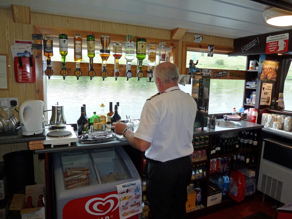 Dennoch gefällt uns die langsame Tuckerfahrt ganz gut, zumal der Irishcoffee sein Übriges dazu tut, den der Stewart hervorragend mit einer richtigen Portion Whiskey zubereitet.