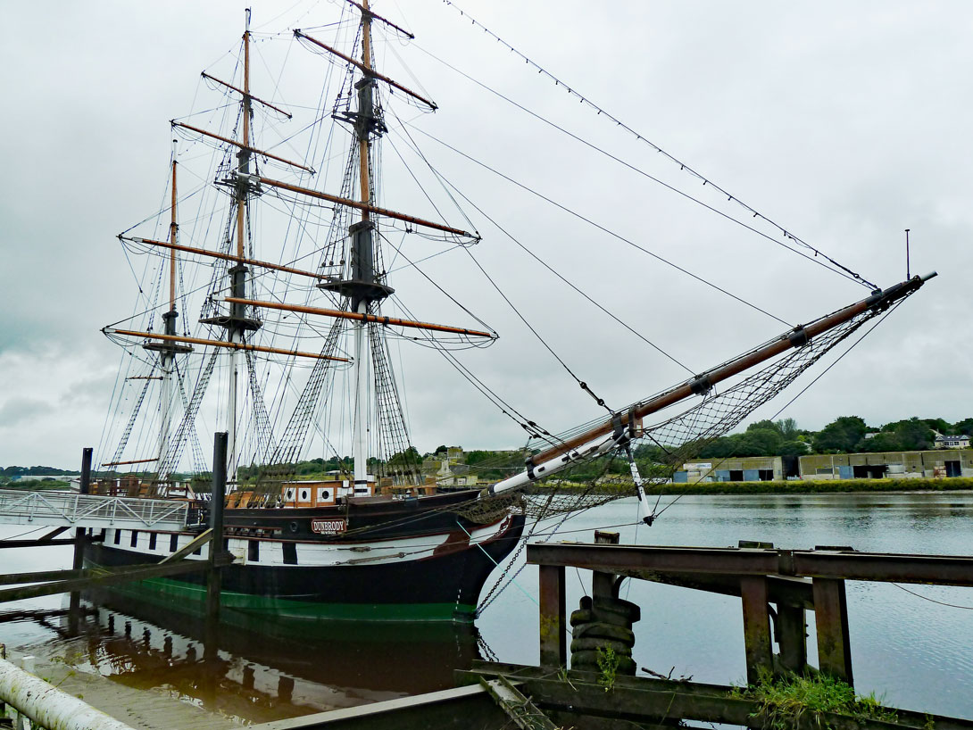 Der Besuch des alten Segelschiffs, das von 1845 bis 1870 viele Iren nach Amerika gebracht hat, ist hochinteressant. Nach einer gut gestalteten audiovisuellen Einführung klettern wir auf das Deck, in die Frachträume und Passagierräume, wo uns die Verschiffung ziemlich authentisch nahe gebracht wird. Wie im Auswanderermuseum in Bremerhaven bekommen wir auch hier ein Ticket und können damit die unsäglich enge Überfahrt nach Amerika nachvollziehen.