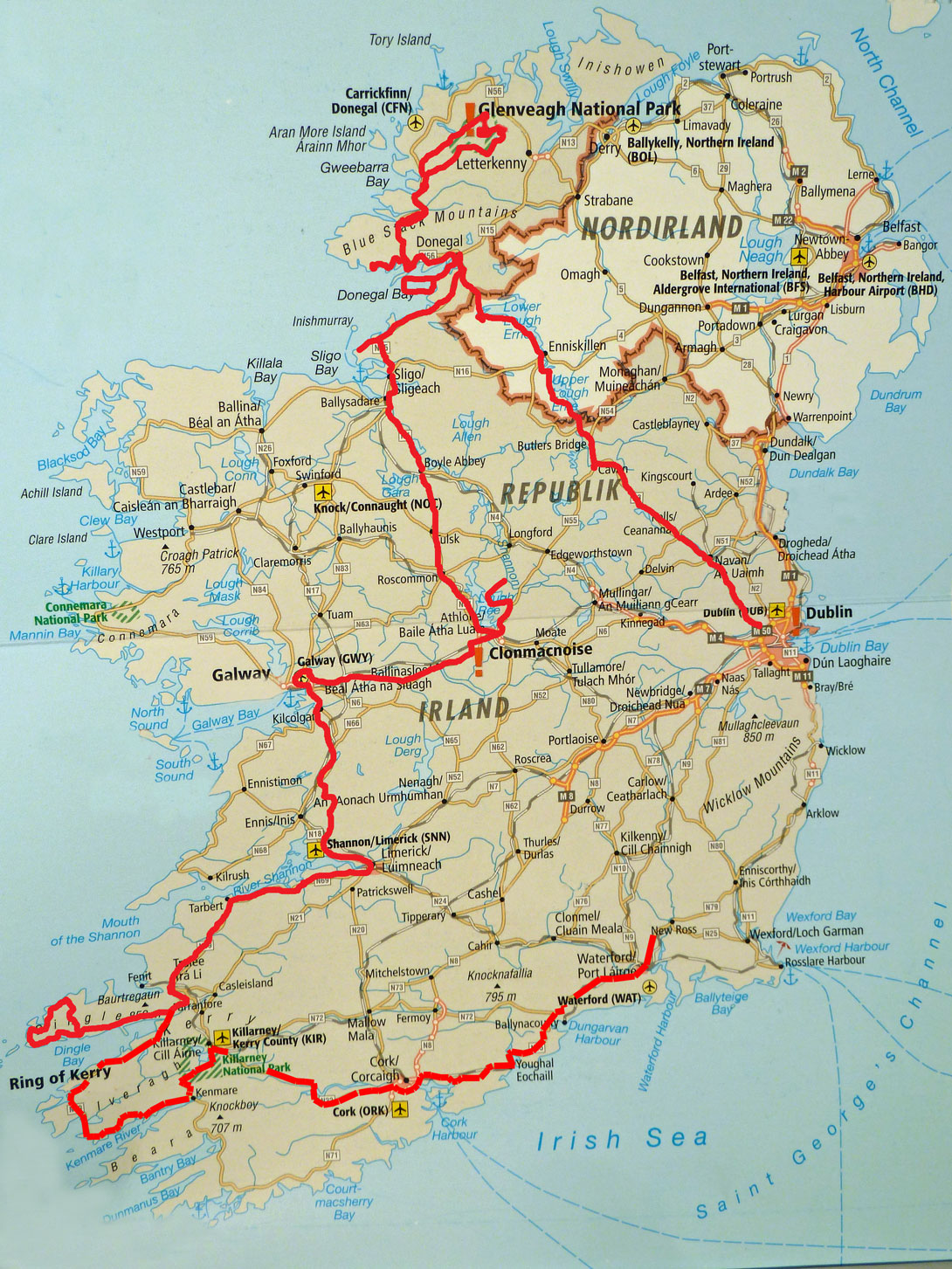 Unsere Reiseroute in IrlandDingle