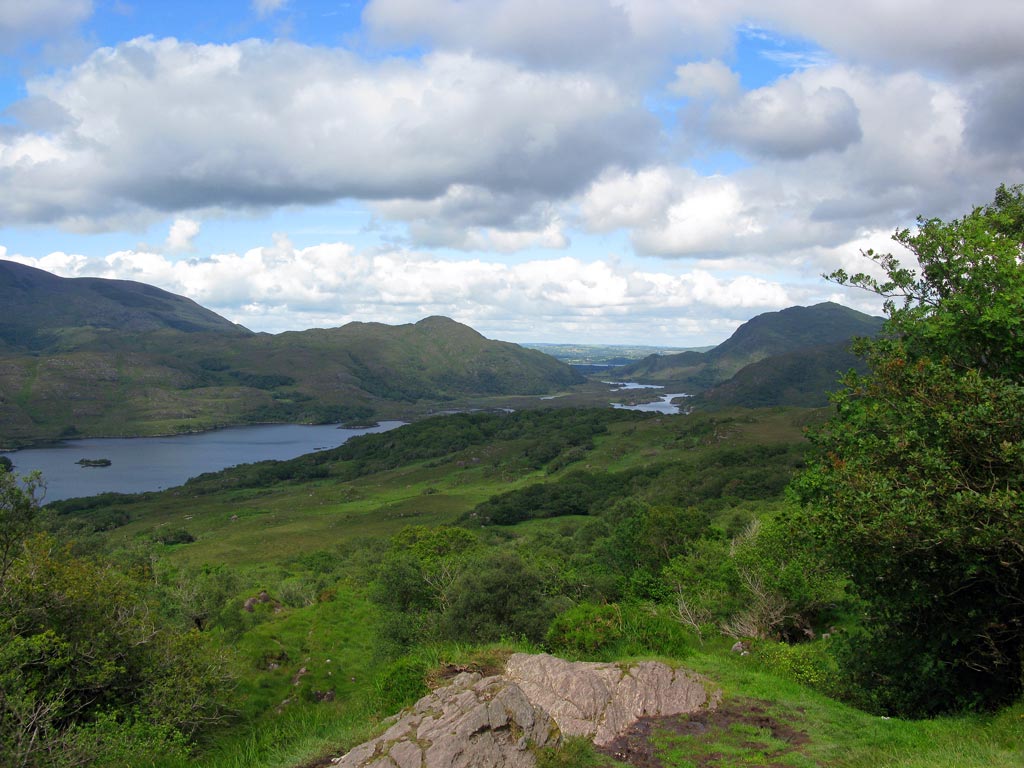 Am Ladies View in Killarney NP. halten wir noch einmal an einem schönen Ausblick, aber leider ist die Sonne jetzt weg.