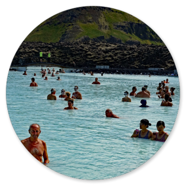 Kurz vor 14:00 Uhr sind wir an der Blauen Lagune und brauchen zum Glück nicht zu warten, weil uns Angelika als Gruppe für 14:15 Uhr angemeldet hat.