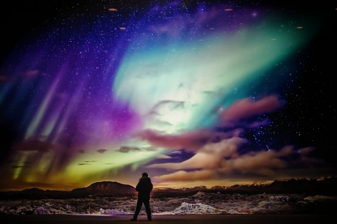 3 Stunden später landen wir auf dem Flughafen Keflavik, der sich 50 km westlich von Reykjavik befindet. Durch die Zeitverschiebung von 2 Stunden ist es jetzt hier 0:15 Uhr Ortszeit.