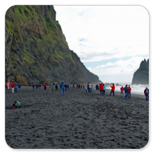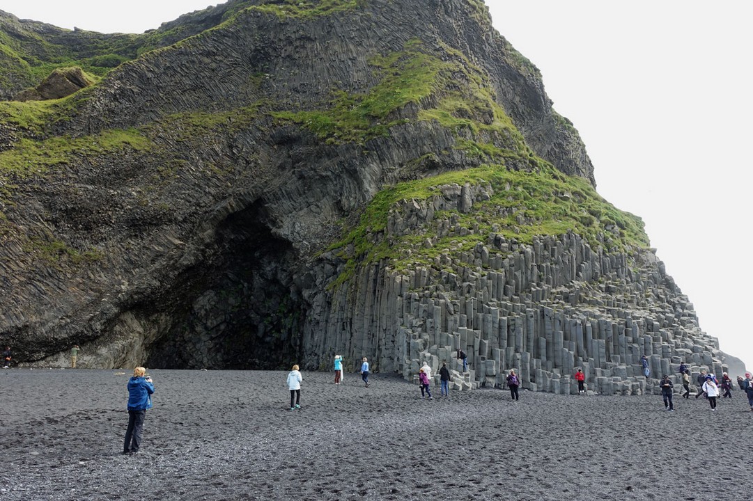Unsere Fahrt geht weiter zum Black Sand Beach bei Reynisfjara, wo die Vulkane säulenförmige Basaltstrukturen hinterlassen haben. Seeschwalben nisten in der Höhe und umschwirren die Touristen, aber die Höhlen der Papageientaucher zwischen den Steinen am Strand können wir trotz Fernglas nicht entdecken.
