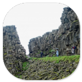 hier aufeinander treffenden Kontinentalplatten von Amerika und Europa errichtet hat. Das ist natürlich nur eine Touristenattraktion und nicht wirklich nachvollziehbar. Aber die Ausflugsbusse fahren natürlich hier hin - wie wir auch - und die Touristen machen ein Foto, bei dem sie sich so hinstellen, als würden sie die Brücke auf Händen tragen. Der Spalt ist ganz schön breit, der sich bei einem Erdbeben aufgrund der Kontinentalplattenverschiebung ergeben hat.