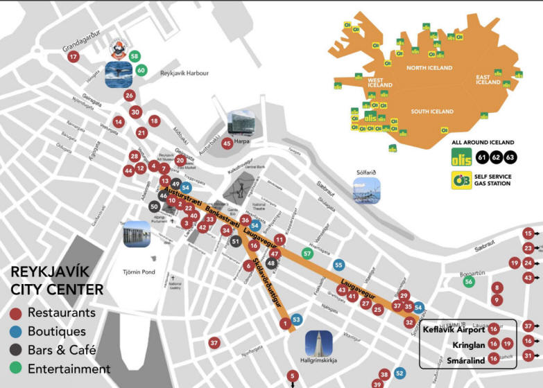 Die Coupons eignen sich vor allem für die eingezeichneten Punkte in Reykjavik.