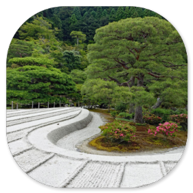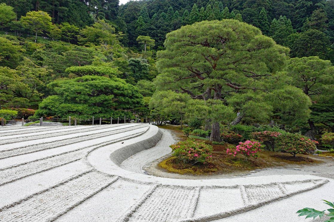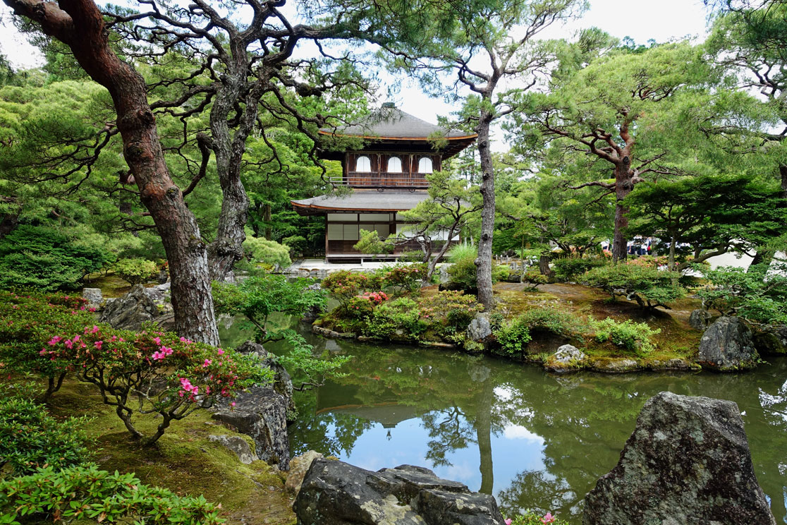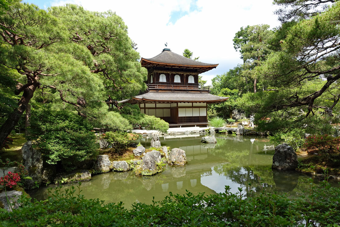 Am Eingangsschild vom Ginkaku-ji, dem Silbernen Pavillon, hält Shin-itchi einen Einführungsvortrag. Er erklärt uns, dass dieser Palast als geheimer Zufluchtsort eines Shoguns errichtet wurde. Zu Ehren seines Großvaters, der den Goldenen Pavillon bauen ließ, wollte dieser im 15. Jahrhundert den Silbernen Pavillon errichten. Leider hatte er wegen vieler kriegerischer Auseinandersetzungen nicht genug Geld, um die Wände mit Silber überziehen zu lassen. Dennoch ist die Gartenanlage wirklich sehenswert und gilt weltweit als klassisches Beispiel japanischer Gartenkunst. Das muss ich auch anerkennen und habe deshalb in der folgenden Fotoshow meine schönsten Gartenfotos vom Ginkaku-ji Pavillon zusammengestellt: