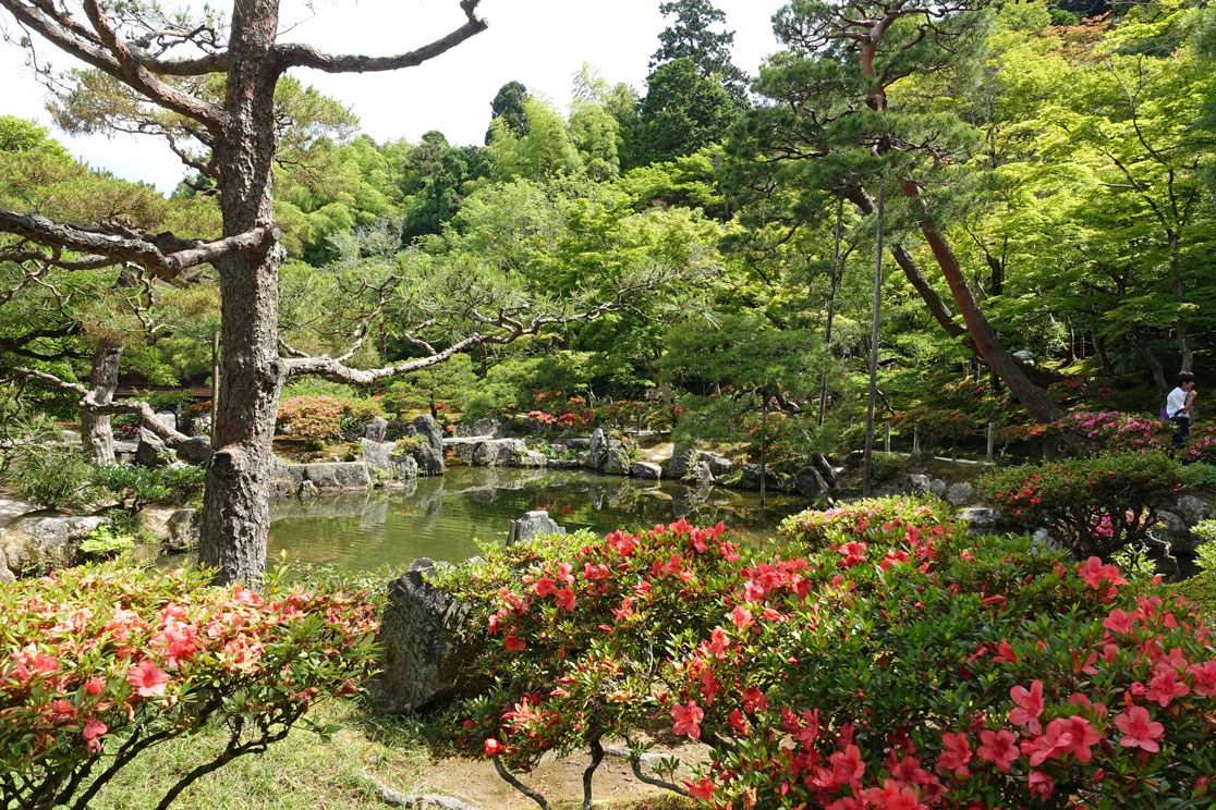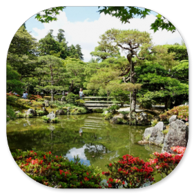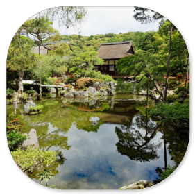 Andersartig ist allerdings die Anlage des Gartens und der Teiche. Im Gegensatz zu den immergrünen Zen-Gärten wurde hier nämlich Wert auf einen Garten gelegt, der durch die Laubfärbung in den verschiedenen Jahreszeiten jeweils anders aussieht.