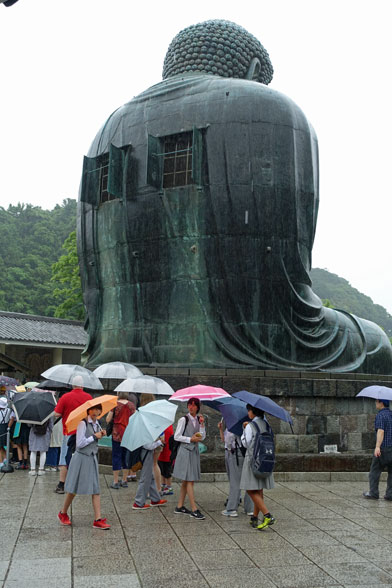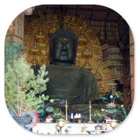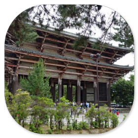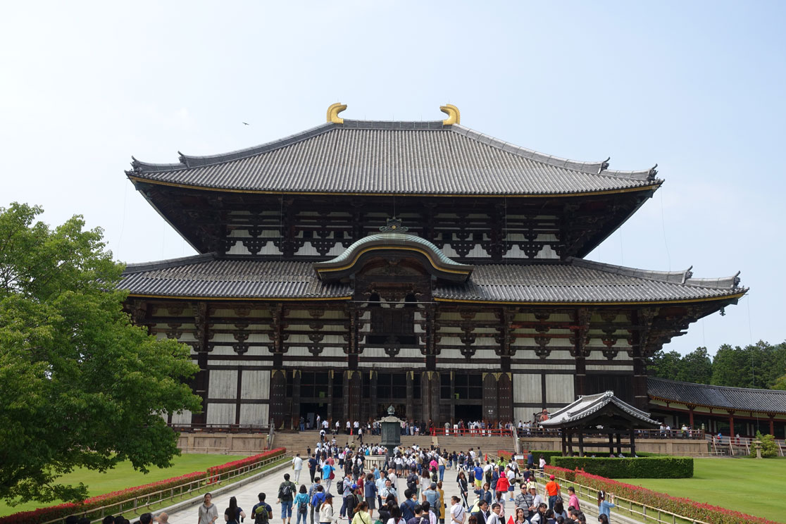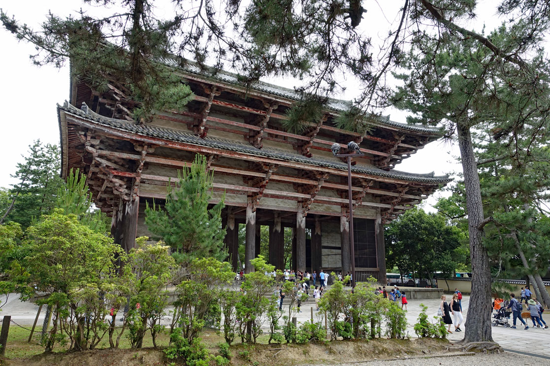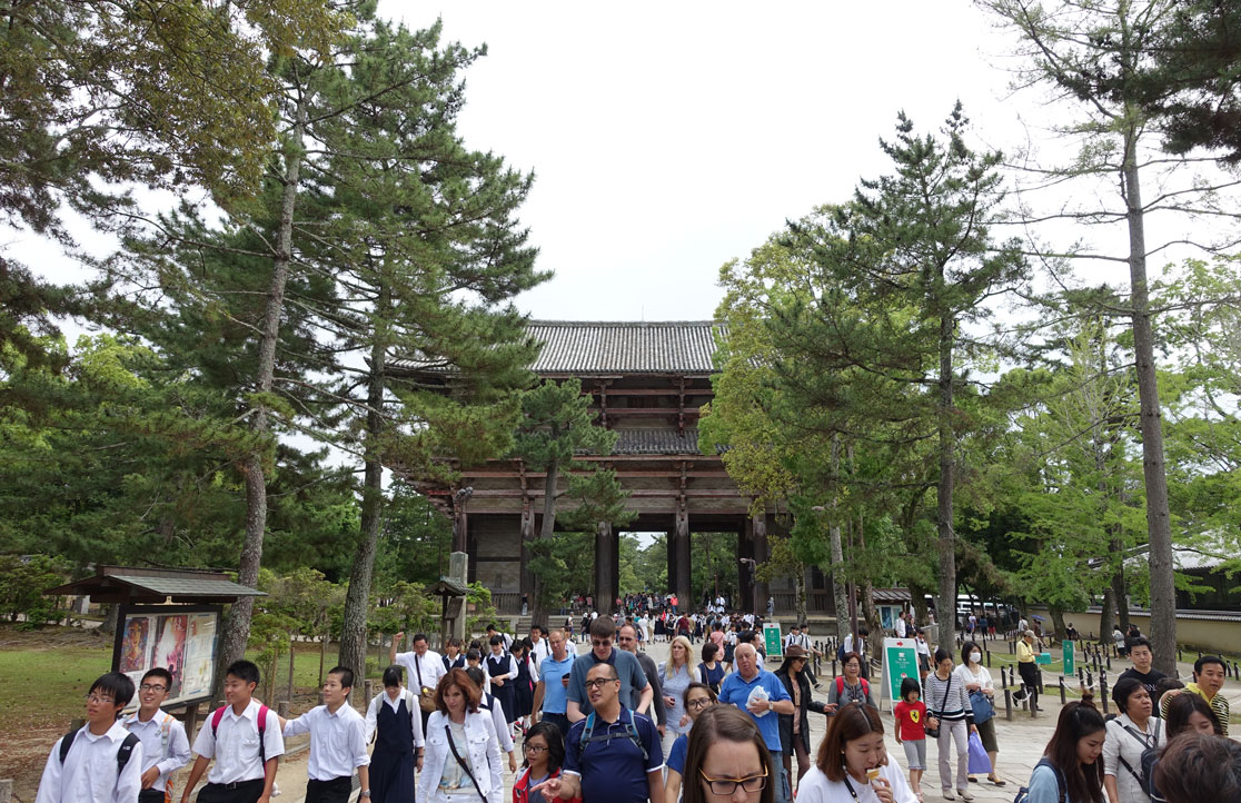 Meistens sind es Schulklassen, wie man an den Uniformen sieht, aber es sind auch viele Familien mit Kindern hier. Im Gegensatz zu den touristischen Plätzen, die wir bisher besucht haben, fallen uns jetzt statt der Ausländer viel mehr Japaner auf, die einen Sonntagsausflug in diese Stadt machen. Für die Japaner ist die riesige Tempelanlage, die UNESCO Weltkulturerbe ist, natürlich von großem Interesse und ein religiöser Zielpunkt. Die große Halle ist vermutlich der größte Holzbau der Welt und eine architektonische Leistung der damaligen Zeit. Sie wurde nämlich schon im Jahre 752 gebaut und musste so groß sein, damit die 16m hohe Buddha-Statue auch hinein passte.