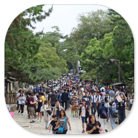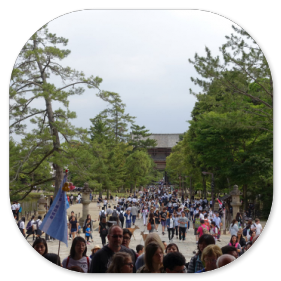Was uns vor allem beim Betreten des Nara-Parks beeindruckt, ist die riesige Menschenmenge, die sich durch die Parkwege schiebt. Eine kleine Bilderfolge verdeutlicht hoffentlich ein bisschen unsere Beobachtungen: