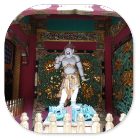 Auch dieser Schrein ist im Laufe der Jahrhunderte mehr als 20 mal erneuert worden. Und so erstrahlt auch jetzt die gesamte Schreinanlage in einem kräftigen Zinnoberrot.