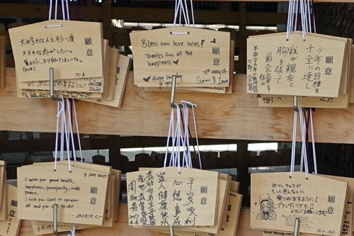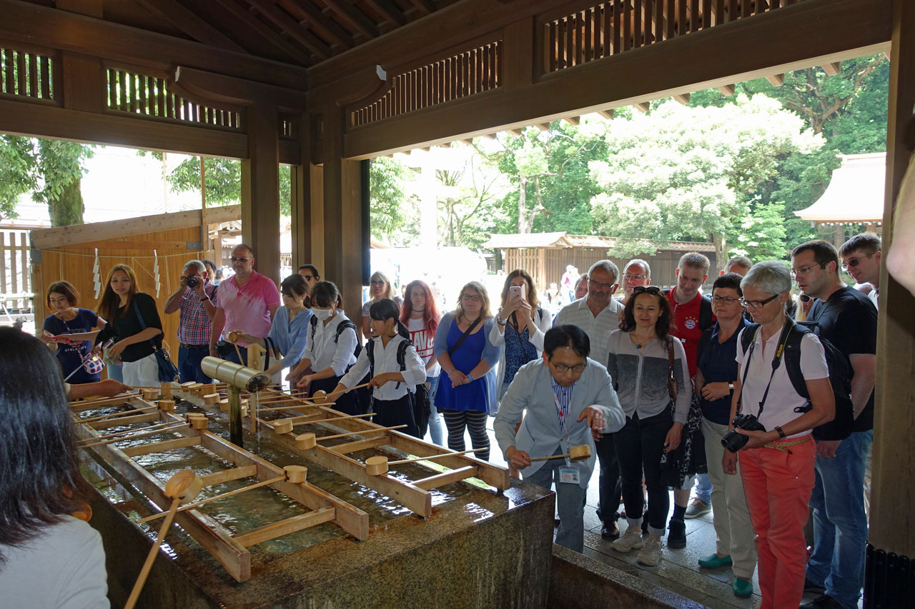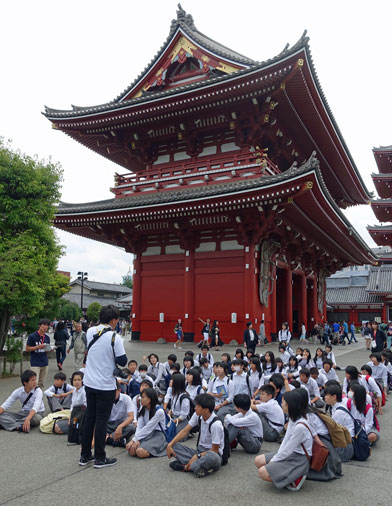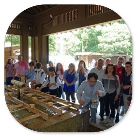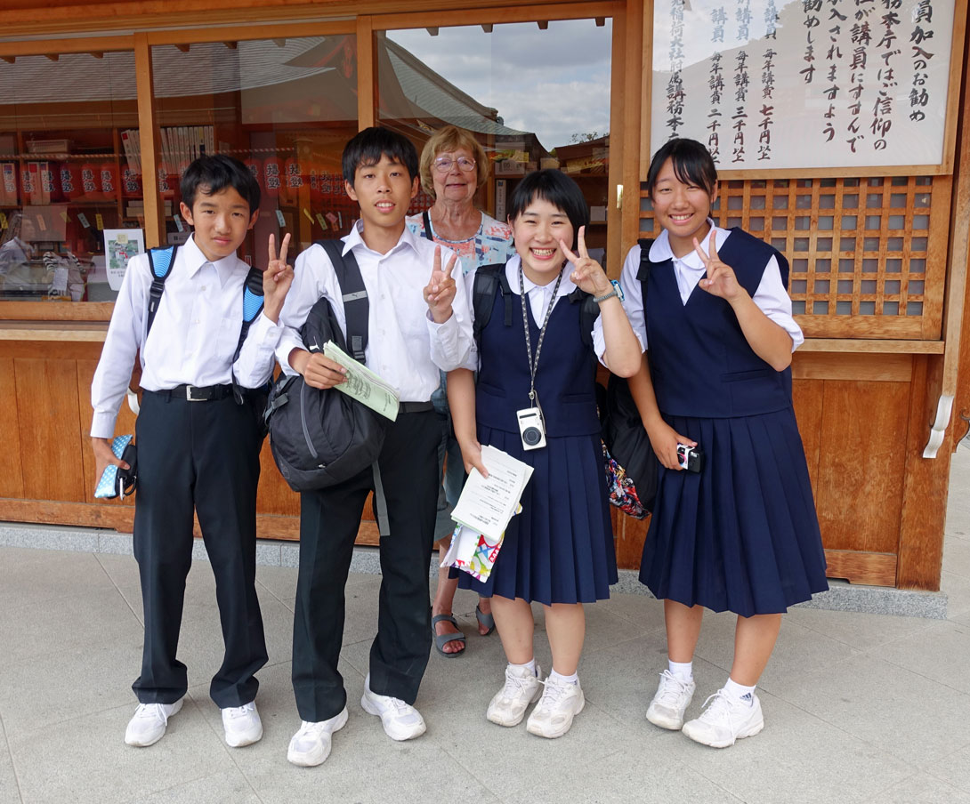 Viele Schulklassen besuchen den Schrein und lernen dabei Fremdsprachen, weil sie die ausländischen Touristen interwiewen.