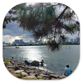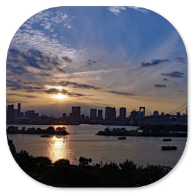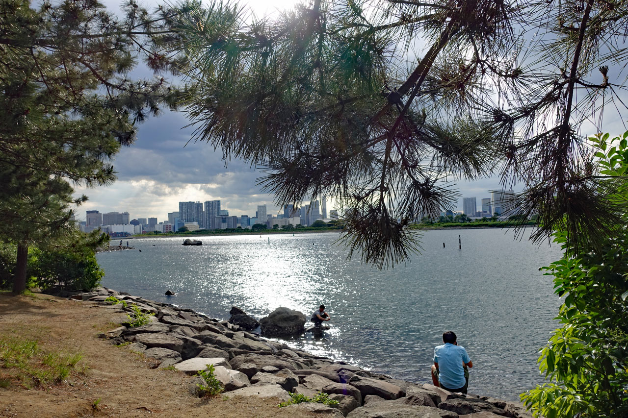 Wir spazieren am Ufer entlang und schauen immer wieder auf die Rainbowbridge und die Skyline von Tokio. Es sieht fantastisch aus. Hier einige Bilder dazu: