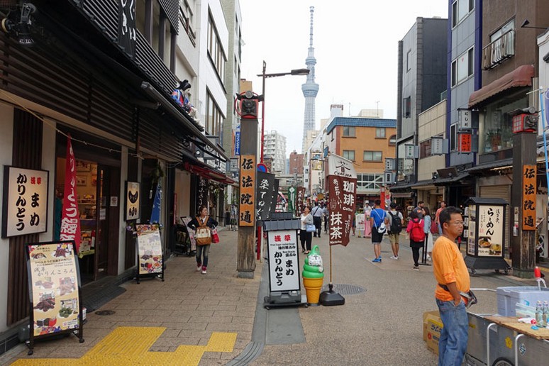 In Asakusa steigen wir direkt neben der Komagata Brücke aus und haben einen tollen Blick auf den Skytree:
