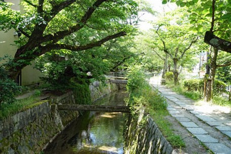 Nur 21 Personen sind heute im Bus, als wir um um 8:30 Uhr zum Ginkaku-ji starten, dem Silberpavillon. Vom Busparkplatz spazieren wir aber erst ein kleines Stückchen über den Philosophenweg. Dieser Weg ist von Kirschbäumen umsäumt und führt 1,8 km am Kanal entlang. Obwohl er schon im Jahre 1890 als Fußweg bekannt war, hat ihn die Stadt Kyoto 1968 als Wanderweg eingerichtet. Mehrere berühmte Tempel und Schreine liegen am Weg. Seinen Namen erhielt er durch einen Philosophieprofessor der Universität Kyoto, der hier täglich spazieren ging.
