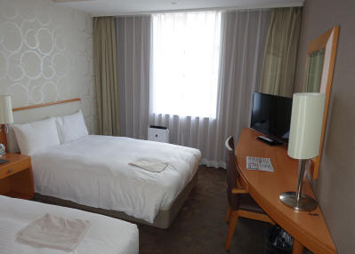 Das Hotel finden wir schnell, da es in der Departure Lounge liegt. Wir bekommen beim Einchecken ein kostenloses Upgrade für ein 22 m² statt 18² m - Zimmer im 3. Stock und sind sehr zufrieden, da es modern eingerichtet ist und eine schöne Dusche hat. Unsere Suche nach einem netten Restaurant ist erfolglos; im gesamten Flughafenbereich sind nur Schnellrestaurants zu finden. So essen wir im Hotelrestaurant zwar sehr gut, werden aber auch 6200 Yen (ca. 50 €) los.