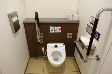 Die Toilette im linken oberen Bild habe ich nicht benutzt, aber die andere war super komfortabel. Man musste sich allerdings erst einmal durch die Bedienungsanleitung kämpfen, die an der Wand angebracht war. Glücklicherweise stand neben den einzelnen Knöpfen eine englische Übersetzung. Der Sitz war nicht nur angewärmt, sondern man konnte nach Erledigung seines Geschäftes sich einsprühen lassen und anschließend mit warmem Wasser alles abspülen. Dabei lässt sich der Wasserdruck einstellen und man kann auch den Strahl verändern. Es macht richtig Spaß, den Strahl von vorn nach hinten wandern lassen und umgekehrt...! Zum Schluss kann man sich mit einem Fön das Hinterteil trocknen. Das macht auch Spaß.