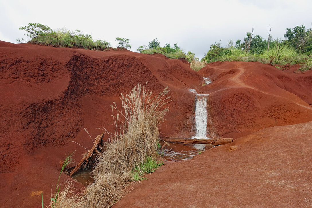 Der Waimea-River - "wai mea" heißt auf hawaiianisch "rotes Wasser" und die Felsen im Waimea-Canyon sind wirklich dunkelrot.