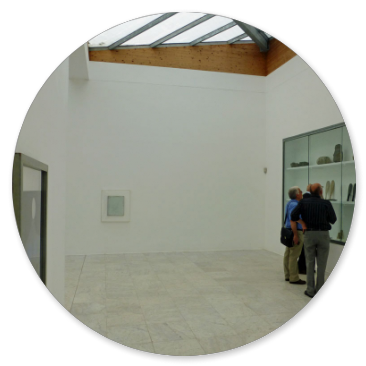 Nun mag natürlich eine Rolle gespielt haben, dass einige Straßen in der Innenstadt wegen des Freundschaftstages der Kulturen gesperrt waren. Besonders Martin-Walter Ruf hatte darunter zu leiden. Der hatte nämlich im Hamtorhotel übernachtet und sein Fahrzeug dort auf dem Parkplatz stehen. Und da er sich auf sein Navi verlassen hatte, in das er die Adresse vom Museum Insel Hombroich eingetippt hatte, war er verlassen. Das wies ihn nämlich stur an, die abgesperrten Straßen zu fahren, was ihn einige Runden kostete. Immerhin schaffte er es bis kurz vor 12:30 Uhr, als unser Museumsführer, Herr Stittgen, nicht mehr länger warten wollte und schon mit der kleinen Gruppe losgezogen war.