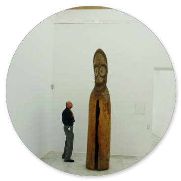 Hier steht Peter Wunderlich gerade an dem "Afrikaner - Mustaphas Traum", den Anatol durch Aushöhlung einer Riesenpappel geschaffen hat.