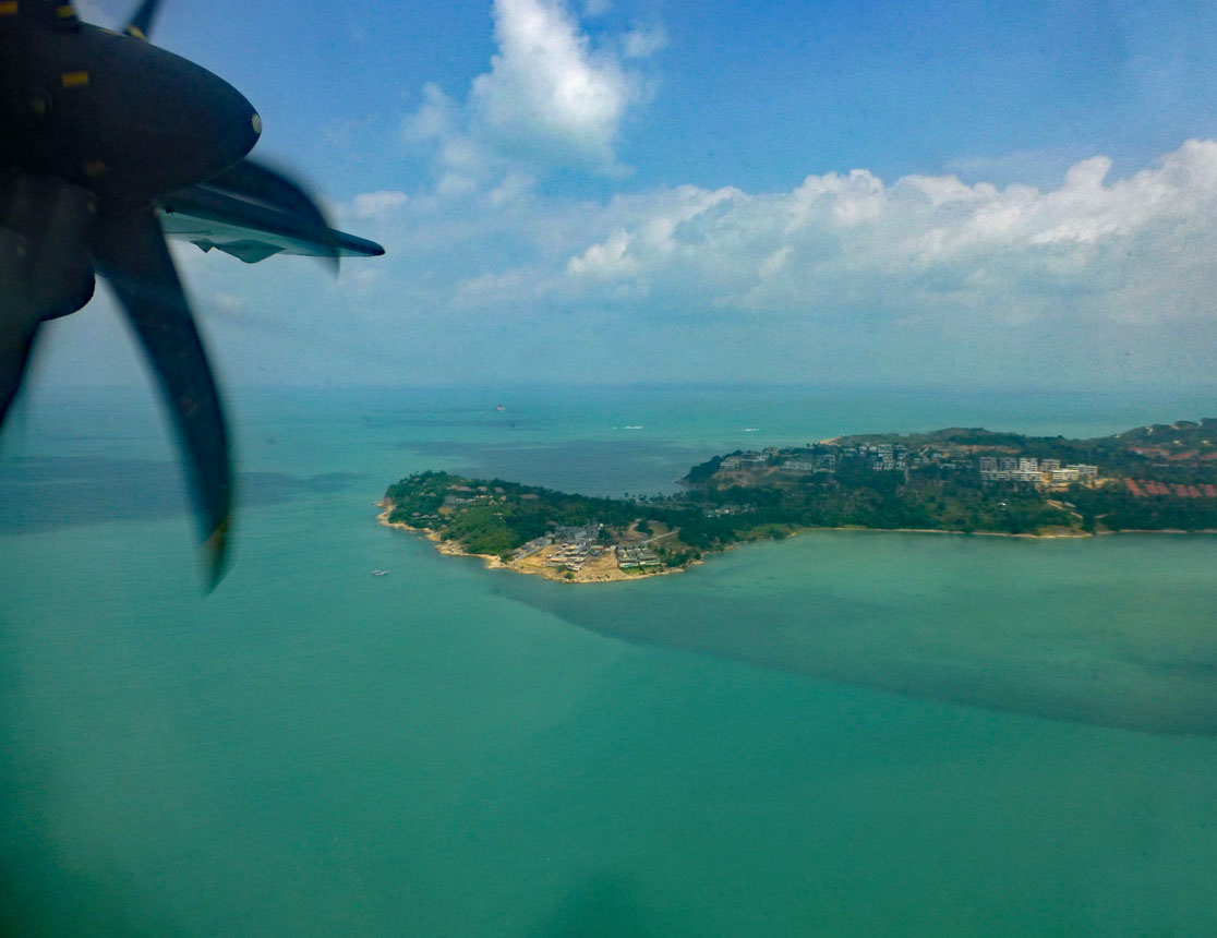 Anflug auf Koh Samui: 30°C und diesiger Himmel