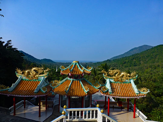 In Thong Sala biegen wir ab und nehmen die Straße nach Norden in Richtung Chaloklum. Am Wasserfal Phaeng Noi steigen wir aus und machen eine kleine Wanderung. Am Ende des Weges kommen wir zu einem Aussichtspunkt, an dem man das winzige Rinnsal bewundern kann, das den felsigen Abhang herunterläuft.