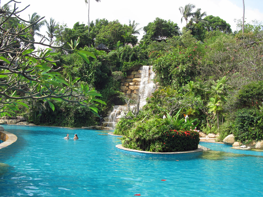 Das Santhiya Resort hat auch eine sehr schöne Poolanlage mit Wasserfall: