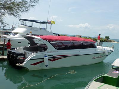 Aber 1 1/2 Stunden müssen wir erst einmal warten. Das Speedboot kommt pünktlich und nimmt auch die Gäste vom Anantara-Resort mit, das eine Wartelounge gegenüber betreibt.Den Transfer zum Buri Rasa Village und zum Anantara Resort erledigt die Firma Ultimate Bliss, die zweimal täglich mit dem Speedboot nach Koh Phangan hinüberfährt.Urlaub auf Kho Phangan