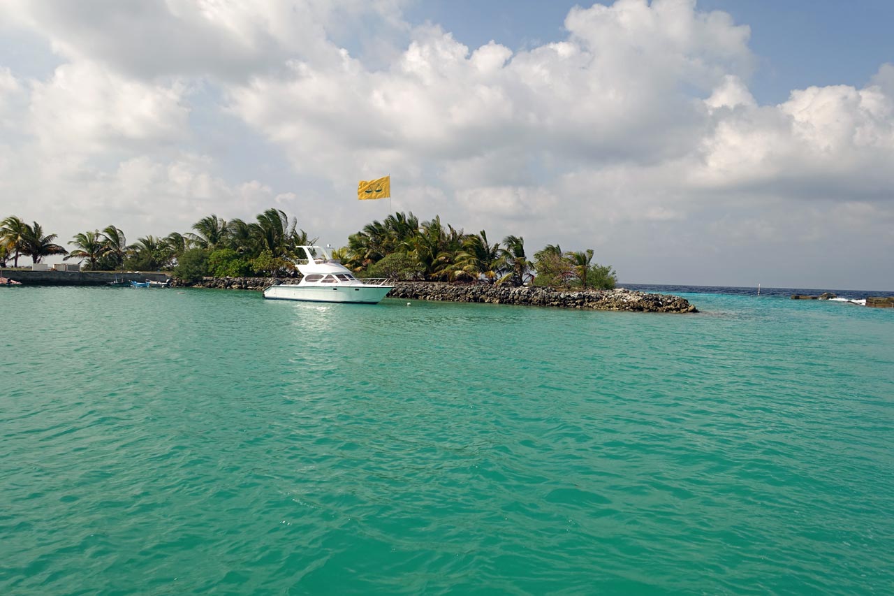 Gegen 14:30 Uhr fahren wir ab und sind eine halbe Stunde später an Amillafushi vorbei kurz vor der kleinen Insel Kihaadhoo, auf der etwa 300 einheimische Maldiver wohnen.