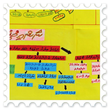 Drei Stunden später geht es weiter zu einer anderen Insel. Sie heißt Kamadhoo und wird von ca. 600 Maldivern bewohnt. Sie ist nicht weit weg von der Touristeninsel Landaa Giraavaru, auf der sich das Four Seasons Resort befindet. Deshalb arbeiten auch die meisten Bewohner in diesem Resort. Dort kosten die Bungalows für die Touristen 1000 Euro und mehr pro Nacht, sodass die Trinkgelder für die Bediensteten großzügig ausfallen und das Einkommen der Maldiver sehr hoch ist. Das merkt man schon bei der Einfahrt in den Hafen dieser Insel, der sehr viel besser befestigt ist und in dem ein reger Verkehr herrscht. Die gelbe Fahne ist das Wahrzeichen der Oppositions- Partei, die hier mit vielen Mitgliedern stark vertreten ist. Die gelben Fahnen finden wir auch auf der Dorfstraße vor dem Parteizentrum der MDP wieder.