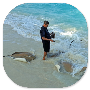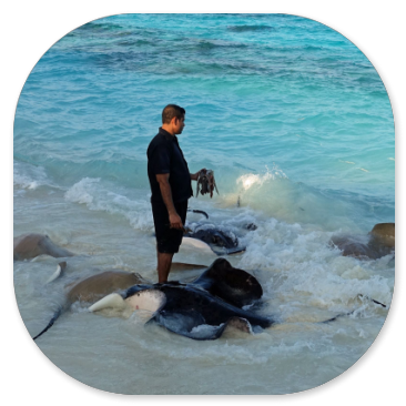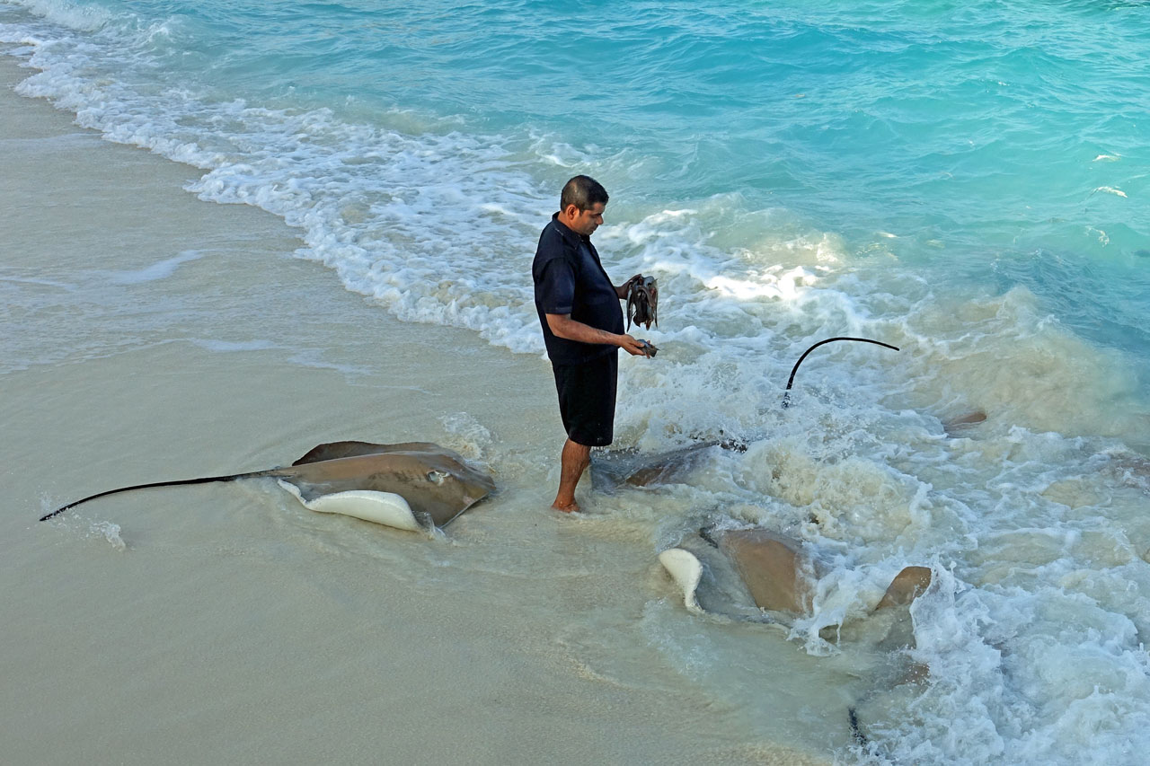 Mantas springen bis auf den Strand, um diese zu erhaschen. Es sind