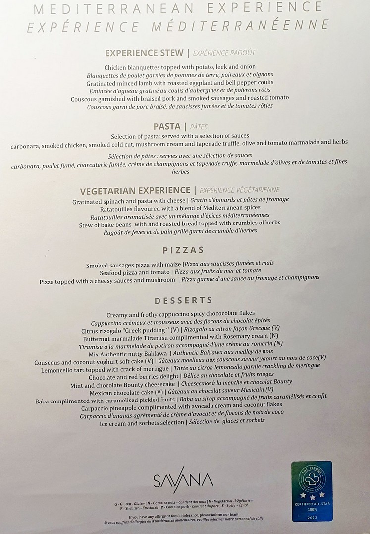Das abendliche Büffet im Savana Restaurant ist heute mediterran und sehr lecker. Wir probieren viele Kleinigkeiten und der Service ist nach einigen Trinkgeldern sehr aufmerksam. Inge und Doris haben an dem südafrikanischen Rosé Gefallen gefunden und ich bleibe beim Bier. Beeindruckend ist auch das Vorspeisenbüffet und Dessertbüffet in dem gekühlten Nebenraum. Jedenfalls sind wir mit dem Essen, dem Hotel, dem Zimmer und dem Ambiente sehr zufrieden.