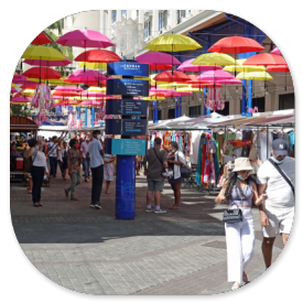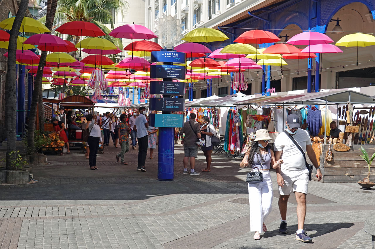 Anschließend setzt uns Sharif an der Caudan Waterfront ab, das ist ein großes Einkaufs- und Veranstaltungszentrum, das es bei unserem letzten Besuch vor 20 Jahren noch nicht gab. Damals gab es auch noch keine Metro, die hierhin fährt.