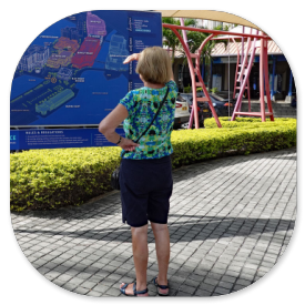 Ich mache einen Spaziergang am Strand entlang und schaue mir die Nachbarhotels an. Die Lage ist gut an einer Karte zu erkennen, die wir an der Rezeption bekommen haben: