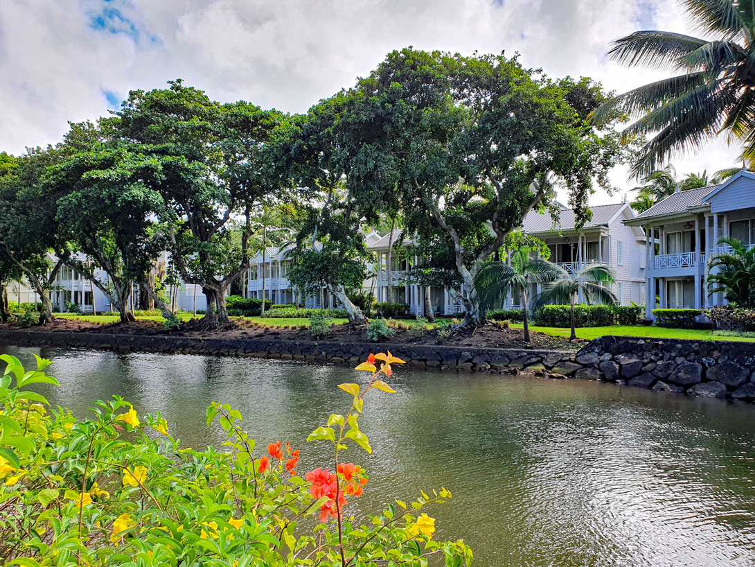 Ein Stückchen weiter schließt sich das nächste Resort an: das Outrigger Mauritius. Auch hier sind die Strandbedingungen identisch mit den beiden vorigen Hotels. Das geht deutlich aus dem Luftbild von dem Resort hervor, das Outrigger auf seiner Webseite anbietet: