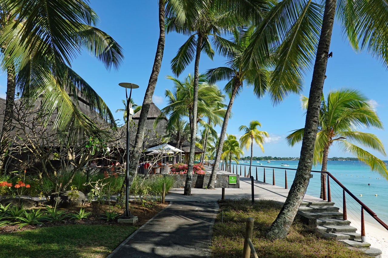 Wandert man am Outrigger weiter, kann man am kilometerlangen Naturstrand bis zum Sofitel SO Mauritius Resort oder sogar noch weiter bis zum Shanti Maurice Resort laufen.