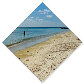 Etwa 500 m vor der Küste befindet sich ein Riff, an dem sich die großen Wellen brechen. Hier fahren auch manchmal Glasbodenboote, Kajütkreuzer oder Boote mit Tauchausrüstung hin.