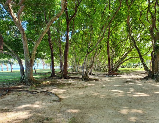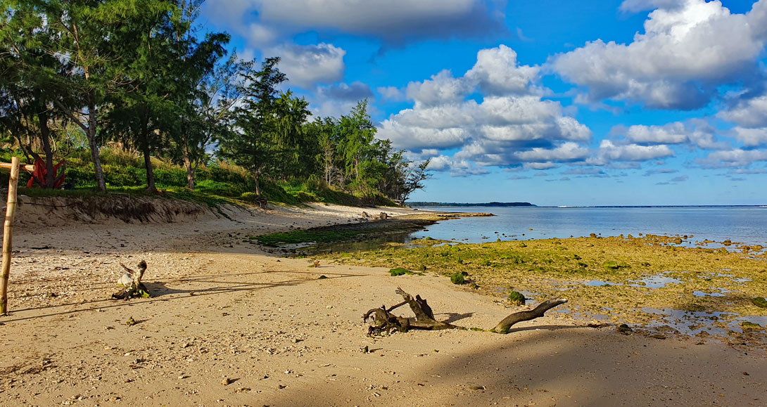Der ist kilometerlang, naturbelassen und relativ sauber, denn es ist kaum Seegras und kein Plastikmüll zu finden. Man kann sehr gut daran entlang laufen, muss aber auf Steine und Korallenreste aufpassen. Im hinteren Bereich grenzt eine gepflegte Baum- und Graszone daran an, die jeweils als Beachpark ausgewiesen ist.