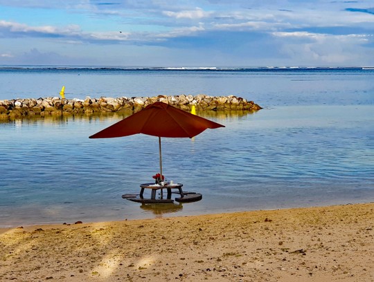Wer Lust und zusätzliche Rupien investiert, kann sich das Frühstück natürlich auch am Strand oder sogar im Wasser servieren lassen. Dazu wird dort ein Tisch sehr kunstvoll dekoriert: