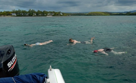 Wir werden zusammen mit einem belgischen Pärchen, zwei Engländerinnen und und einem deutschen Paar aus dem Riu Le Morne einem Speedboot der Firma Aqua & Soleil zugewiesen. .