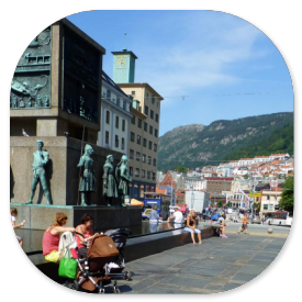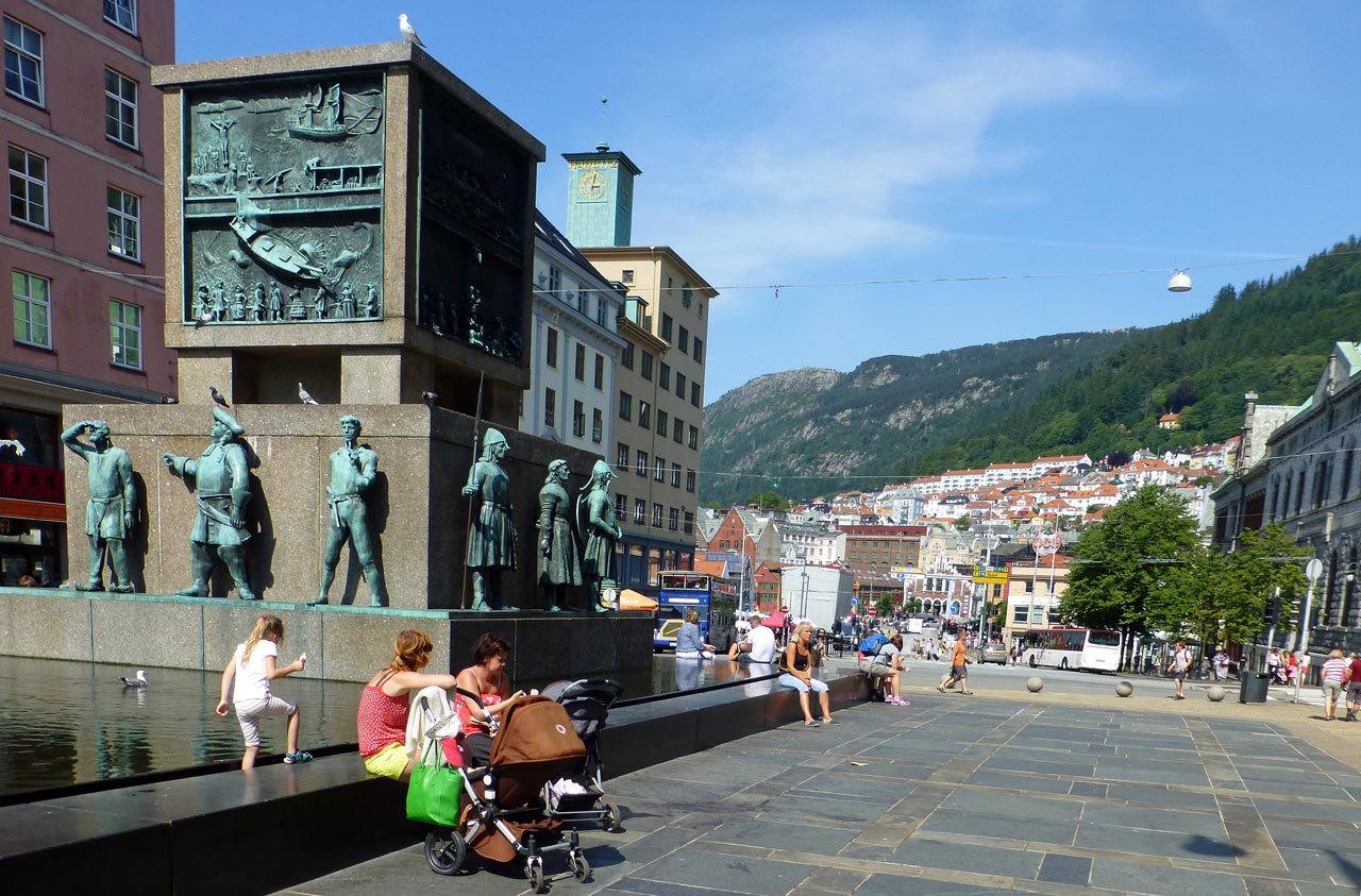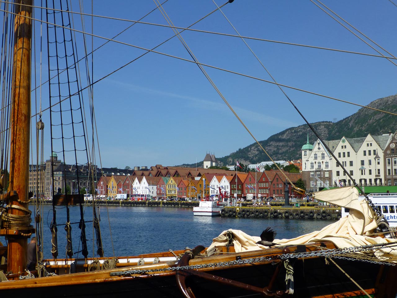 Im Übrigen rüstet sich Bergen für die nächsten vier Tage, weil hier 70 große Segelschiffe zu einer Regatta ähnlich der Kieler Woche erwartet werden. Zwei Viermaster liegen schon im Hafen. Das ist natürlich eine tolle Kulisse.