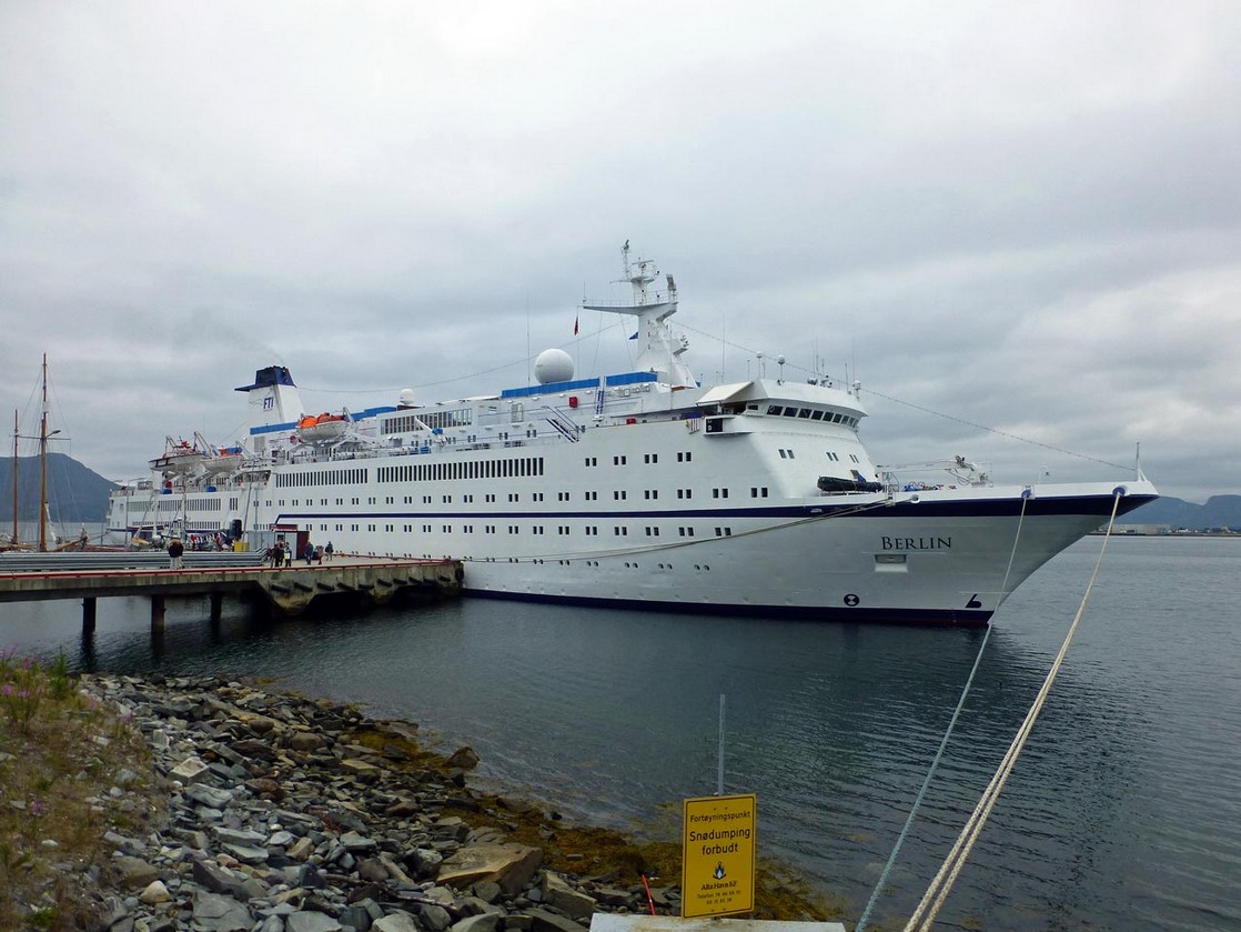 Nachdem uns die Kreuzfahrt durchs Rote Meer mit der MS Berlin im vorigen Jahr so gut gefallen hatte, haben wir dieses Jahr wiederum die Schiffsreise „Nordland pur“ vom 15.7. bis 25.7.2014 gebucht. Wir hatten die Angebote mit den Hurtigruten verglichen, die ja hauptsächlich diese Route fahren und uns für die MS Berlin entschieden, weil sie nur 11 Häfen anläuft, während die Hurtigruten an 34 Stationen halt macht und ihre Fracht ablädt. Wir wollten einfach nicht zu jeder Tages- und Nachtzeit in irgendeinem Hafen einlaufen und uns das Gerumpel des Be- und Entladens anhören. Stattdessen gefiel uns die Route der MS Berlin auch deshalb besser, weil sie die wichtigsten Orte von Bergen bis zum Nordkap einschloss und dort entsprechenden Ausflüge anbot.Die Anreise war ein wenig kompliziert, weil der Starthafen Tromsø war, den man per Flug nur mit mehrmaligem Umsteigen von Düsseldorf erreichen kann. Wir wählten dann schließlich den von FTI Cruises angebotenen Zubringerflug mit Air Berlin und Transfer für 519 Euro, was wir ziemlich teuer fanden. Andere Gäste hatten unterschiedliche Fluggesellschaften gewählt und waren über Stockholm und Oslo geflogen. Das war zwar billiger, dauerte aber wesentlich länger und brachte einige Unannehmlichkeiten mit sich, weil nämlich teilweise das Gepäck nicht mitkam.