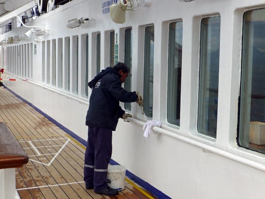 Ärgerlich ist, dass überall weiter gestrichen wird, auch wenn die Gäste des Schiffes sich auf dem Deck sonnen. Sobald man in irgendeinem Hafen liegt, wird irgendwo gestrichen. Das könnte doch erledigt werden, wenn keine Passagiere auf dem Schiff sind.