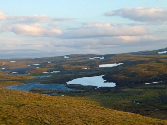 Es sind 14° C, der Himmel ist bedeckt und wir sind froh, eine Jacke übergezogen zu haben, als wir von unserem Führer am zugeteilten Bus Nr. 2 begrüßt werden. Der ist von Beruf Klavierstimmer und wohnt als Deutscher seit Jahren hier in der Finnmark. Er erklärt uns mit viel Sachverstand die Umgebung und das Leben hier oben in der Finnmark. Leben ist natürlich um diese Uhrzeit hier noch nicht zu erwarten. Es ist erstaunlich grün überall und wir erfahren, dass Alta die nördlichsten Kiefernwälder der Welt beherbergt, obwohl es am 70. Breitengrad liegt. Das kommt durch den Golfstrom, der so milde Winter beschert, dass der Hafen nicht zufriert. Aber zwei Monate im Jahr ist es total dunkel, weil die Sonne nicht erscheint. So muss sich alles in den 3 Sommermonaten abspielen in der Natur, die dann zu explodieren scheint. Außerdem ist der Boden hier sehr fruchtbar, sodass sogar Getreide angebaut werden kann.