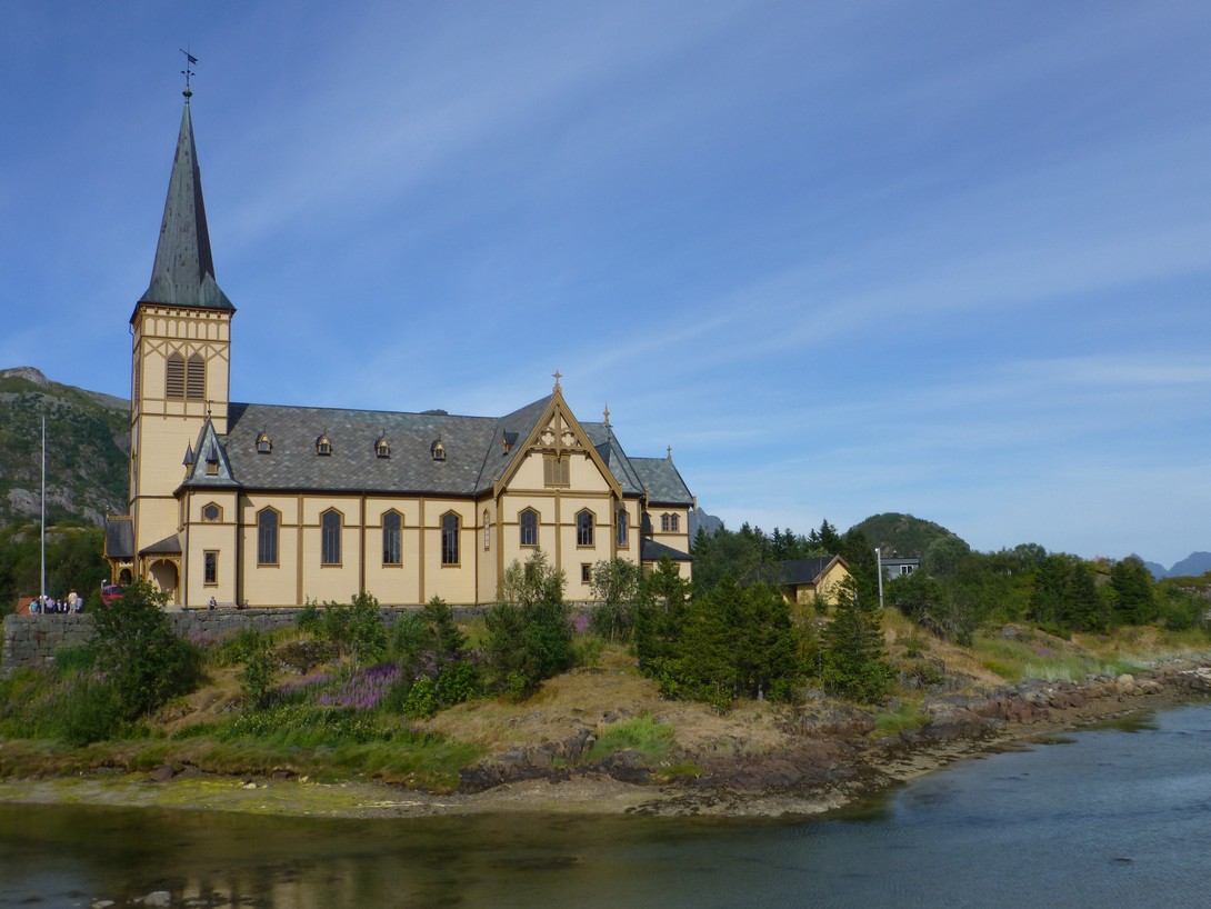 Der besaß einen großen Frachtsegler, der anschließend den Stockfisch nach Bergen brachte und von dort mit verschiedensten Waren "aus der Stadt" zurückkehrte. Im Fischerdorf herrschte geschäftiges Treiben: Es gab einen Gemischtwarenladen, eine Bäckerei, eine Spirituosenverkaufsstelle, eine Schmiede und verschiedene Werkstätten. Auf der Rückfahrt fahren wir noch an der Lofotenkathedrale in Kabelvåg vorbei.
