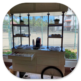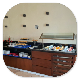 Das riesige Büffet ist gut sortiert und entspricht einem deutschen Hotel mit 4 Sternen. Jeden Tag gibt es ein Themenbüffet: orientalisch, italienisch, spanisch, dominikanisch, mexikanisch, international und sonntags ein Chef-Büffet. Neben vielfältigen Salaten, den Warmhaltepfannen und einem enormen Nachspeisenbüffet gibt es im hinteren Teil des Restaurants zwei Koch- und Bratstationen, an denen Köche Sonderwünsche erfüllen. An der Seite werden dazu von einem anderen Koch jeden Tag Pastas zubereitet. Alles ist sehr lecker und wir finden es interessant, dass keine Pommes Frites angeboten werden. Eigentlich ist für jeden etwas dabei. Ungewohnt ist natürlich die Leere in dem Büffet-Restaurant.