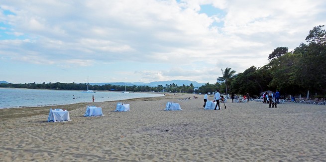 Die Ruhe dauert bis zum Nachmittag, dann fallen die Dominikaner wieder mit ihren Familien ein. In kürzester Zeit sind alle Liegen besetzt, die Strandbars sind voll und die Lautstärke hat gewaltig zugenommen.