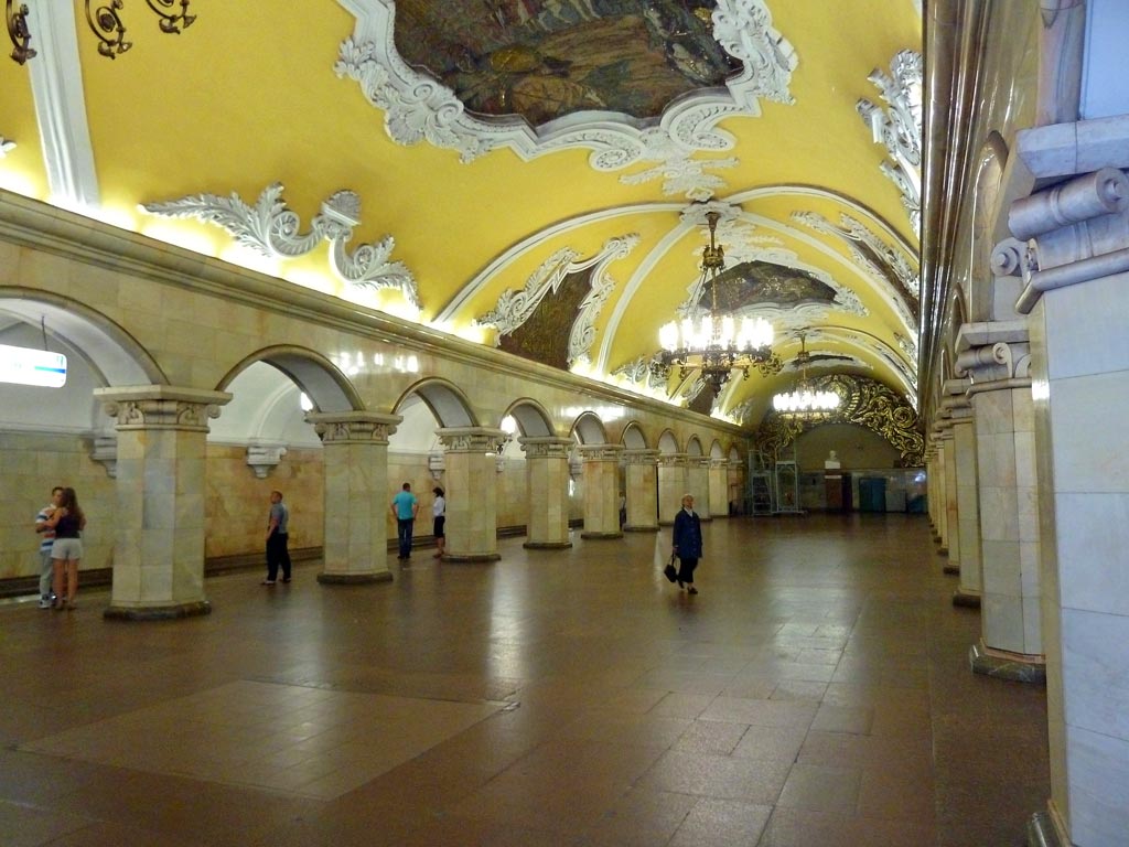 Die Fahrt mit der Metro in Moskau ist ein Erlebnis, das man sich gönnen muss. Es ist wirklich die schönste U-Bahn, die ich im Leben gesehen habe.