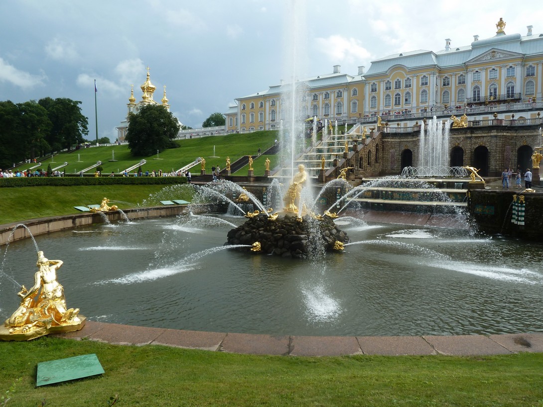 Der Palast von Peterhof mit der großen Kaskade und den vielen vergoldeten Figuren ist imposant. Leider regnet es zwischendurch und man begreift, dass man hier in St. Petersburg Meeresklima hat, das sehr schnell wechselt.