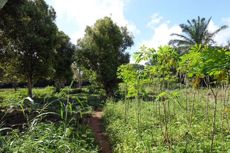 Inzwischen fängt es an zu regnen und Ismail flitzt zurück zum Minibus, um ein paar Schirme zu holen. Aber vor uns liegt die Community Kizimbani, das ist die Dorfgemeinschaft der Gewürzfarm.